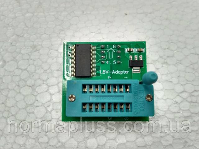 Отже для коректної прошивки знадобиться : програматор, перехідник-адаптер 1,8V, перехідник SOP-8 на DIP-8 і сам чіп.