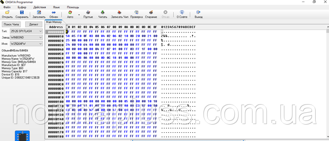 Читання/запис 1,8 вольтових чіпів пам'яті 25 серії з допомогою програматора CH341A